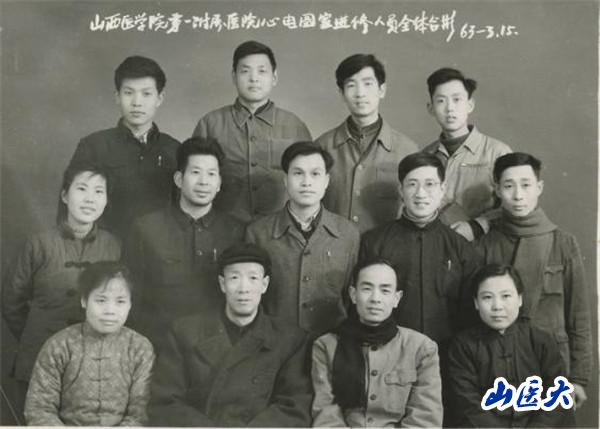图为1963年3月15日,第一医院内科工作人员与心电图室进修人员合影。第一排右一为赵秀芬,右二为李运乾;第三排右一为霍宝成,内科心电图检查工作人员。