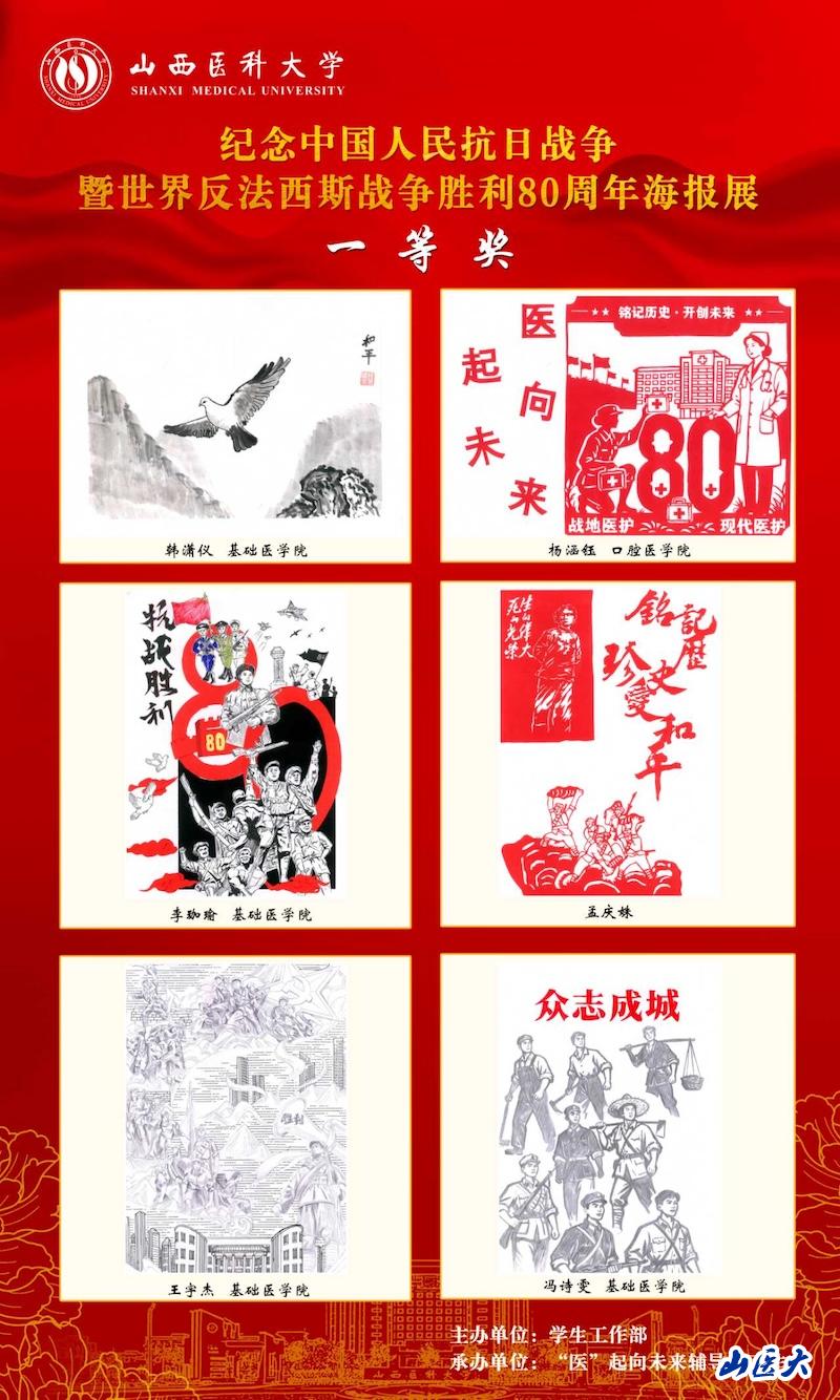 10月8日至11月28日,由学生工作部主办,“医”起向未来辅导员工作室承办的纪念中国人民抗日战争暨世界反法西斯战争胜利80周年海报展在学生社区成功举办。活动旨在通过艺术创作与展示,推动爱国主义教育在生活场景中落地生根。