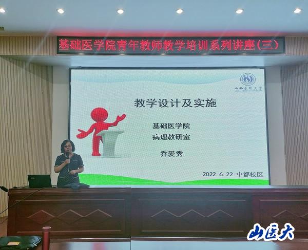6月22日下午,基础医学院在博学楼A座基础报告厅举办青年教师教学能力培训讲座第三讲,讲座由基础医学院病理学教研室乔爱秀主讲。