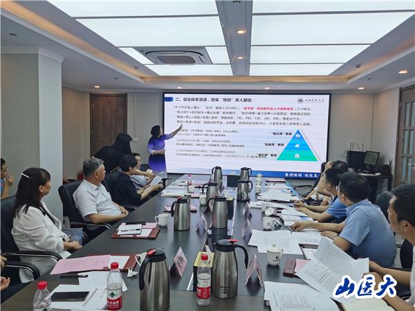 周丽霞从学校深化创新创业教育改革情况、学院建设情况、未来建设任务和绩效目标三方面详细介绍了近年来学院在育人、培养、转化、服务等方面开展的创新创业教育工作及教育部医学生创新创业教育课程虚拟教研室的建设情况。