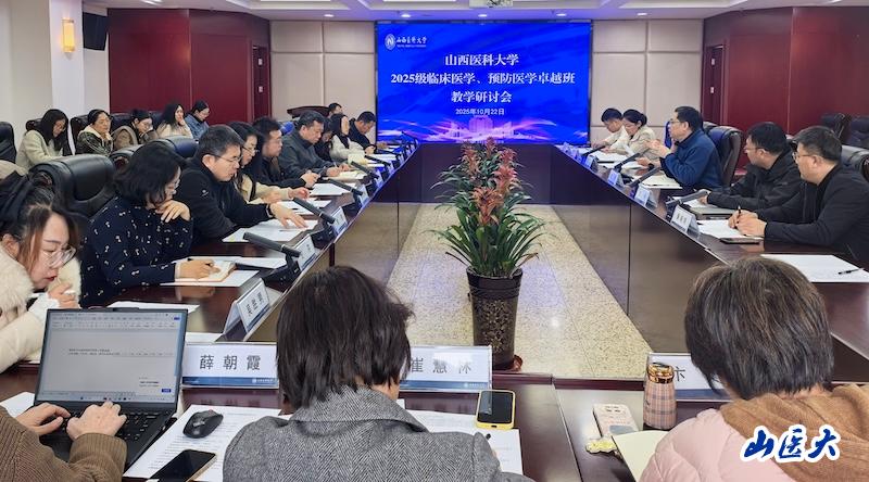 10月22日下午,学校在中都校区召开2025级临床医学、预防医学本博贯通制卓越班教学研讨会。教务部部长覃凯、研究生学院副院长薄晓明、创新创业学院副院长王兴和相关职能部门负责人,以及相关教学单位副院长、课程负责人参加研讨会,会议由覃凯主持。