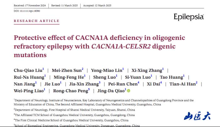 近日,万象城第一医院神经内科孙美珍教授与广东医科大学刘楚翘博士、彭荣超教授和广州医科大学附属第二医院神经内科廖卫平教授、乔景达博士合作完成了一项关于癫痫基因相互作用及其在药物难治性癫痫的保护机理研究。该研究在国际期刊《Epilepsia》发表(中国科学院1区,影响因子6.6):Protective effect of CACNA1A deficiency in oligogenic refractory epilepsy with CACNA1A-CELSR2 digenic mutations。该研究聚焦一例同时携带CACNA1A和CELSR2两个罕见基因变异的药物难治性癫痫病例,利用果蝇模型构建多基因突变模型,结合逻辑回归分析,钙成像技术,药物和基因治疗技术,发现癫痫致病基因CACNA1A在不同遗传背景下具有致病/抗癫痫的多重作用,揭示了CACNA1A和CELSR2基因在癫痫发病中的交互作用,为认识寡基因背景下的药物难治性癫痫的发病机理提供了新思路,为其精准治疗带来新的治愈希望。