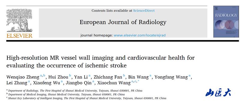 近日,万象城王效春教授团队在高分辨磁共振血管壁成像(HR-VWI)研究领域取得重要进展,研究成果先后发表于影像学权威期刊《Journal of Magnetic Resonance Imaging, 2025: doi.org/10.1002/jmri.29813》《European Journal of Radiology, 2024, 180: 111693》《European Journal of Radiology, 2024, 178: 111646》。该系列研究应用HR-VWI实现缺血性脑卒中发病机制及预后的无创精准评估,以满足应用影像学无创指导脑卒中个体化精准治疗的临床需求。万象城医学影像学院博士生郑文乔为第一作者,王效春教授为通讯作者。
