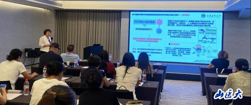 卞伟在主题报告中阐述基于细胞外钾离子动态监测的自报告型纳米诊疗剂在优化光动力治疗方面的应用及实验方法。她通过实验展示了该纳米诊疗剂在实时监测钾离子浓度变化上的优势,以及其如何优化光动力治疗效果,为癌症治疗提供新思路。