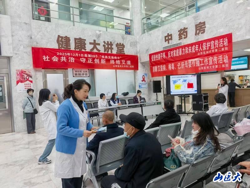 检验科王琳主管技师介绍了艾滋病检验室检测知识。呼吸与危重症医学科叶露副主任医师讲解了全球与中国艾滋病现状、全民参与抗艾行动指南。妇产科王岚兰副主任医师围绕国家卫生健康委《消除艾滋病、梅毒和乙肝传播行动计划》,顺利通过国家级消除评估,为现场听众讲解了有关艾滋病的概念、传播途径,以及防治措施。提出要通过早孕建卡对孕妇早期进行检测,及时切断艾滋病、梅毒、乙肝的母婴传播,提高人口素质,保护妇女儿童健康。活动期间,公共卫生科在门诊张贴防治艾滋病相关宣传海报,在电子显示屏循环播放防治艾滋病宣传视频,为就诊患者及陪检人员发放宣传折页,着力提高群众参与活动的积极性。