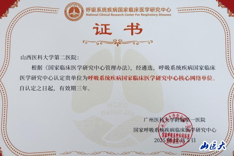 此次获批核心网络单位,是第二医院学科建设进程中的重要里程碑。呼吸与危重症医学科将以此为契机、以临床需求为导向、以协作创新为动力,持续深耕呼吸疾病领域,用更优质的医疗与科研服务,守护三晋百姓的呼吸健康!