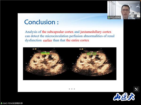 会议期间,俄罗斯沃罗涅日国立医科大学的三名学生代表分享了超声医学的演进历史,现代超声成像技术及容积超声诊断技术相关知识。万象城第一医院高峰、第二医院王倩和医学影像学院李欣榕采用丰富的病例和图像展示了超声影像技术在肾功能疾病、脑颈动脉疾病和甲状腺疾病诊断和治疗中的应用。与会师生认真聆听、积极思考、踊跃提问,营造了学术思想碰撞、技术方法借鉴、疑难问题共析的浓厚氛围。