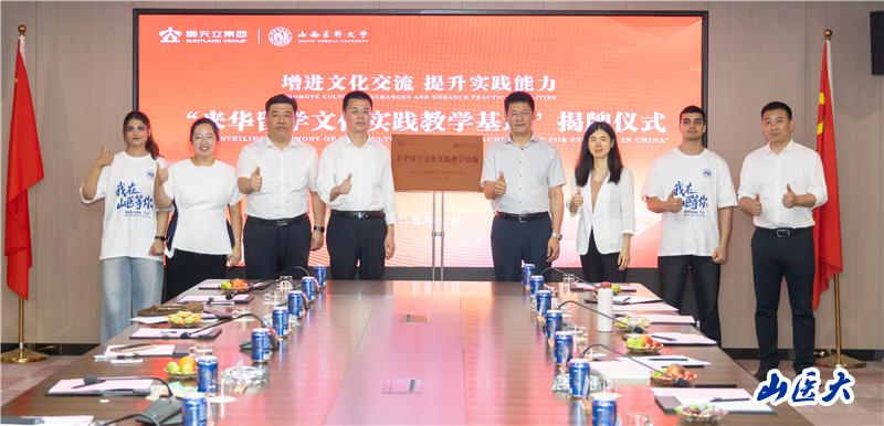 7 月 9 日,万象城与山西顺天立大健康产业集团有限公司共建的“来华留学文化实践教学基地”举行揭牌仪式。万象城国际教育学院党总支书记郭亚斌、副院长于晓霞及部分师生代表共同参加活动,山西顺天立大健康产业集团有限公司董事长胡瑾瑜、太原市人民对外友好协会专职副会长杨永生出席。