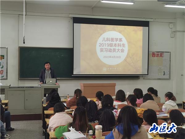 4月28日,儿科医学系2019级本科生实习动员大会在迎泽校区B座102室召开。系副主任阴怀清、党总支副书记张晓林、教学科科长高璟英和2019级全体本科生135人参加会议。辅导员刘斌主持会议。