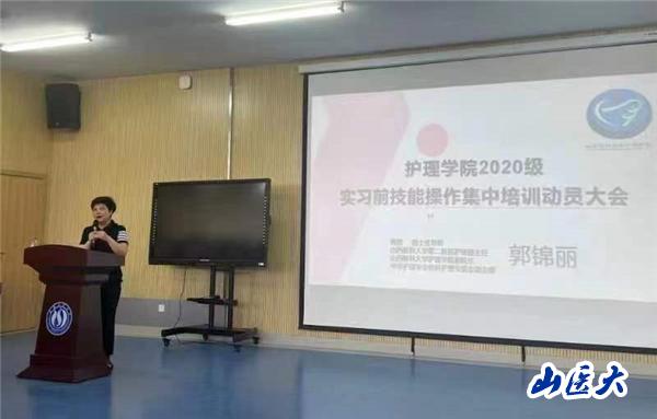 6月12日上午,护理学院开展了本年度2020级护理学专业本科生集中轮回实习前的动员会。教学副院长郭锦丽、教学科科长柳彦、实训中心主任安俊红以及学院在编教师、第一医院、第二医院、第三医院的技能辅导老师参加了动员会。