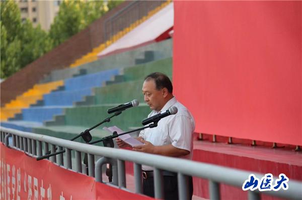 为迎接2023级新生入校,帮助新生尽快融入山医的大家庭,增进同学们对学院的归属感和荣誉感,丰富学生精神文化生活,9月10日基础医学院在中都校区风雨操场举办“强国有我 青春有为”开学第一跑活动,基础医学院党委书记王卓出席并讲话,基础医学院党委副书记刘霞、分团委书记李颖以及2023级辅导员和全体新生参加此次活动。