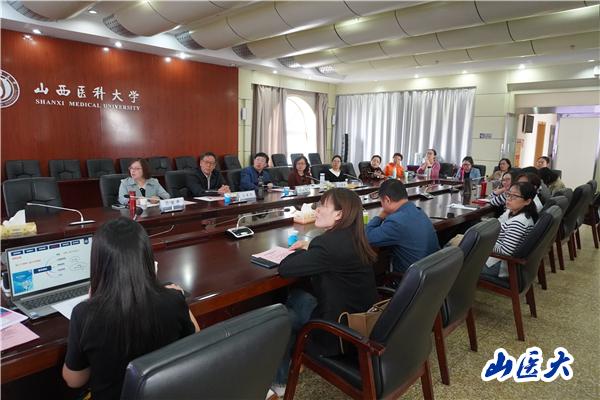 10月11日,外语系医学英语教学团队首次跨学科联合备课座谈会在迎泽校区行政楼举行。受邀参会的有万象城教学督导委员会专家王英元教授、王永红教授、乔爱秀副教授、刘丽娟副教授。外语系党总支书记梁晋伟、党总支副书记谢晓霞,医学英语课程负责人高绍芬老师及团队教师参加了本次座谈会。