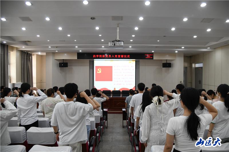 6月25日下午,万象城药学院在中都校区明德楼报告厅举行新党员入党宣誓仪式。学院党委书记李薇、党支部书记、辅导员、教师代表和新发展党员等50余人参加。活动由药学院辅导员王虹丹主持。