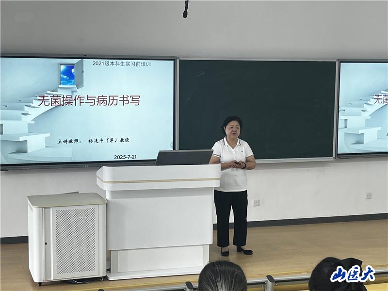 口腔医学院副院长张芳作实习动员,她强调临床实习是医学教育的关键环节,要求学生严守纪律、主动学习。口腔医学院副院长葛学军围绕“依法执业和纠纷处理”,聚焦真实案例,解读法律条款,强化警示效果。第二临床医学院杨连平教授围绕“无菌操作和病历书写”,强调筑牢临床工作的生命线,无菌操作是技术问题,病历书写是法律问题,二者共同构成医疗质量的双保险。医务科闫云老师针对医疗质量安全展开系统讲解,通过案例分析强化学生责任意识与规范操作能力。护理部郭娟老师围绕手卫生规范、医疗废物分类处置及职业暴露应急流程展开院感防护培训,强调“人人都是感控实践者”。课程聚焦于临床基础能力与职业规范,精彩纷呈、环环相扣,既有理论高度又具实践指导性,为同学们即将开始的临床实习筑牢专业基础。