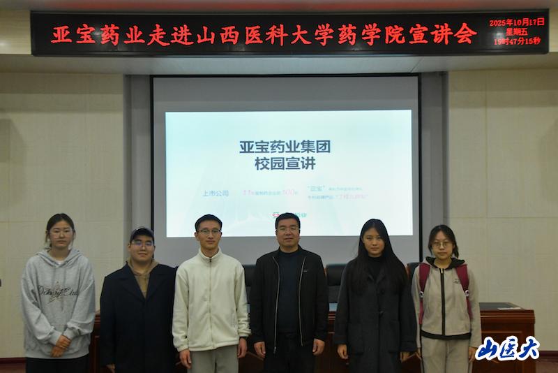 宣讲会上,亚宝药业集团人事部经理任碧海系统性地介绍了亚宝药业的企业概况、核心研发方向、重点产品矩阵及未来战略规划。他特别对丁桂儿脐贴、曲克芦丁片等明星产品进行了深入解析,并重点展示了基于山西道地药材的“晋药”系列创新成果,企业深厚的研发实力与本土创新特色,激发了在座学子的文化自信与地域自豪感。