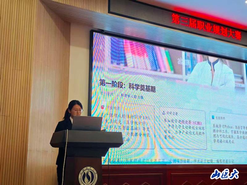 决赛现场,选手们精神饱满、从容自信,结合自身专业背景与兴趣特长,从行业分析、自我认知、职业目标、实施路径及评估调整等方面,清晰阐述了各自的职业规划。有的选手聚焦临床科研领域,立志深耕基础医学研究、攻克医学难题;有的选手瞄准基层医疗赛道,计划扎根社区卫生服务、守护群众健康;还有的选手结合医学教育、医药研发等方向,展现了新时代医学生多元的职业追求。选手们的规划逻辑清晰、贴合实际,展现出扎实的专业功底与积极向上的精神风貌。