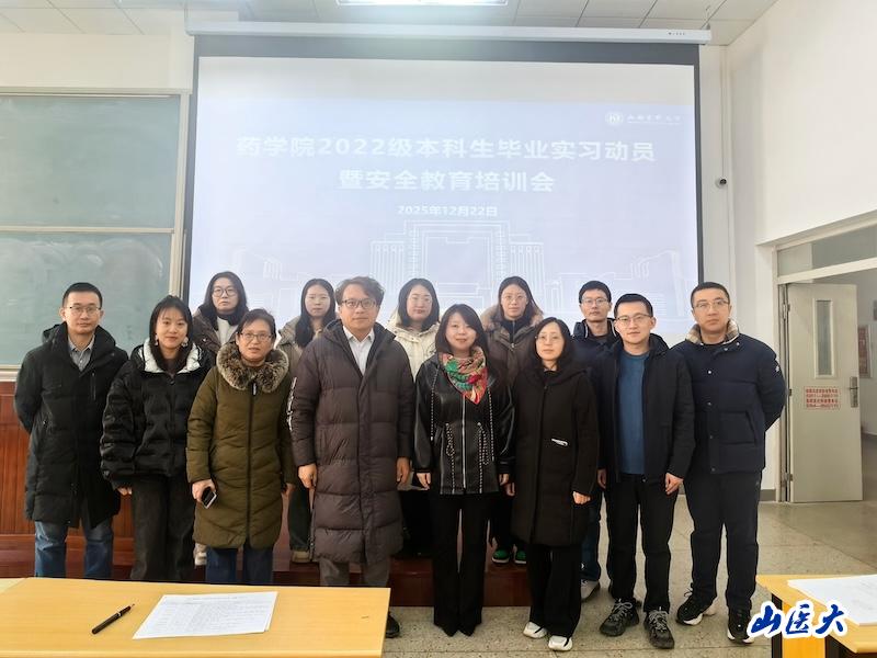 12月22日上午,药学院在中都校区笃行B202教室召开2022级本科生毕业实习动员暨安全教育培训会。学院副院长梁泰刚,党委副书记童玲,实习基地带教老师,2022级药学和中药学专业思想政治辅导员及全体本科生参加了会议。会议由药学专业思想政治辅导员雷寰宇老师主持。