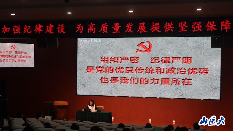 讲座中,王瑛首先系统回顾了党的纪律建设百年历程,并通过多个典型案例,生动展现了中国共产党从严管党治党的坚定决心;接着深入解读了“六大纪律”的核心内涵和要求,以及“十五五”规划对纪律建设提出的新要求;最后强调了党的纪律建设对于医学生成长成才的重要意义。王瑛鼓励同学们不仅要刻苦钻研医学知识,更要注重锤炼品德修为,常怀敬畏之心,恪守纪律规矩,努力成为既有精湛医术、又有高尚医德、更有坚定操守的卓越医学人才,在未来守护人民健康的伟大事业中书写无愧于时代的青春华章!