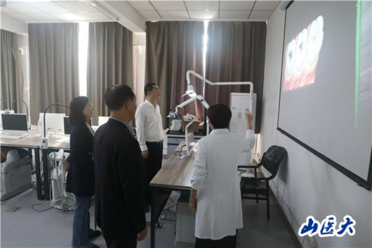韩树彪一行实地察看了口腔疾病防治与新材料山西省重点实验室和临床模拟实训中心,详细听取介绍和切身体会口腔诊疗的规范操作与感受。在座谈会上,与会人员共同观看了口腔医院建院40周年宣传片。