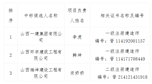 1、中标候选人基本情况