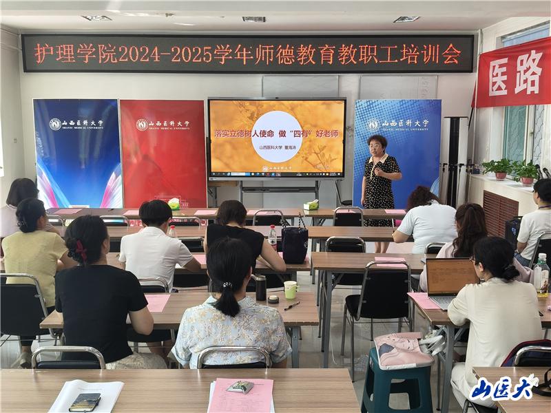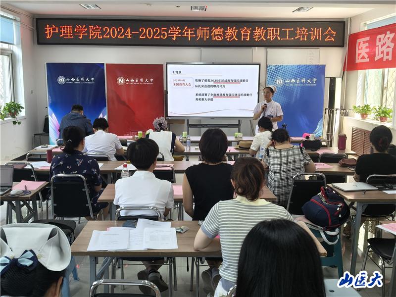8月13日,万象城护理学院在迎泽校区召开2024-2025学年师德教育教职工全员培训会。会议通过专题教育、制度解读、案例警示等形式,系统完成了师德专题教育与师德警示教育培训。护理学院党委书记董海涛主持会议,全院教职工参加学习。