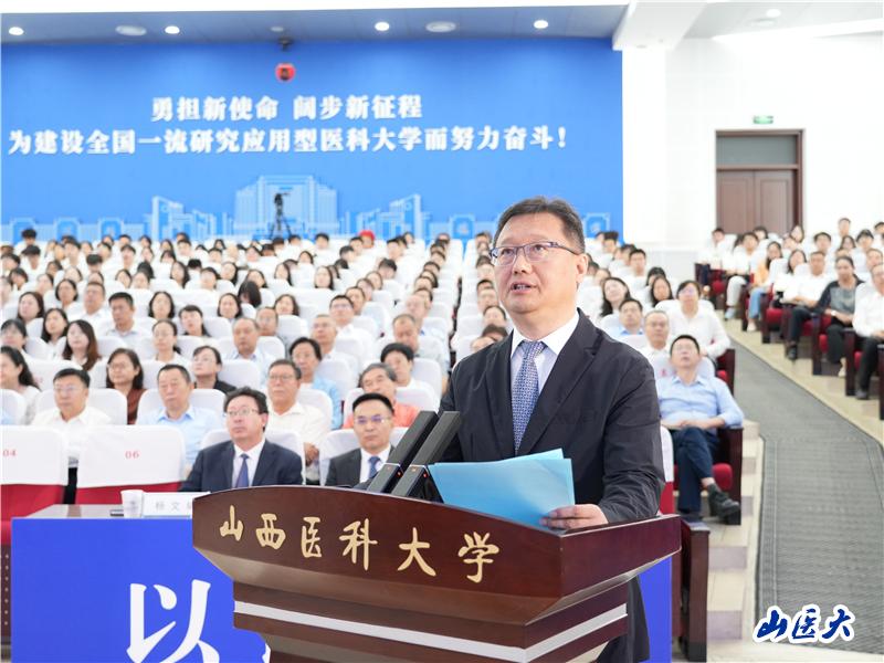 解军以《笃学崇教、德医砺质——着力培养德智体美劳全面发展的人民满意的好医生》为题,汇报了学校从“五四薪火”到“冲击双一流”的奋进之路,阐述了学校近20年来“三次转型”的思考规划和推动本科教育高质量发展实践,介绍了学校在“大思政-1345”新医德育人模式和“数智脑-1346”新医科特色育人体系两个特色典型案例方面的探索与实践,并就审核评估准备工作与自评自建工作进行了汇报。他表示,学校发展所取得的每一项成绩,都凝聚着大家的智慧与心血,坚信在各位专家指导帮助下,在省教育厅大力支持下,此次审核评估必将成为学校迈向全国一流研究应用型医科大学的重要里程碑!