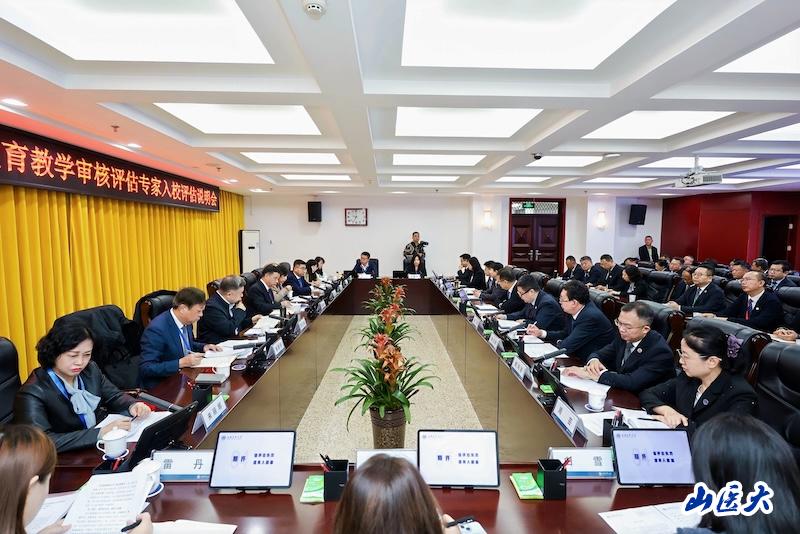 校党委书记王军在致辞中代表学校对专家组表示热烈欢迎与衷心感谢。他指出,本科教育是学校发展的立身之本和战略基石,校党委始终把本科教育摆在中心位置,坚持以本为本、推进“四个回归”,将审核评估作为推动内涵发展、特色创新的重要契机。他强调,线上评估期间专家组严谨细致、求真务实的工作作风为学校提供了宝贵指导,全校深受教育与鼓舞,学校将以此次入校评估为新的起点,全力配合专家组工作,以扎实作风和有力保障迎接考察,切实把专家意见转化为发展动力,加快建设全国一流研究应用型医科大学,为教育强国、健康中国建设贡献山医力量。