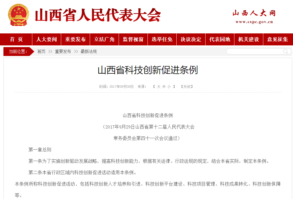 2020-10-30《山西省科技创新促进条例》山西省科技创新促进条例(2017年9月29日山西省第十二届人民代表大会常务委员会第四十一次会议通过)第一章 总则第一条 为了实施创新驱动发展战略,提高科技创新能力,根据有关法律、行政法规...MORE