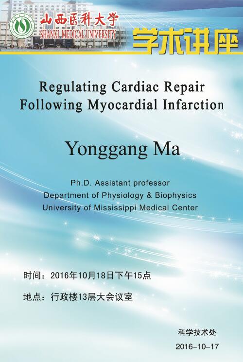 学术讲座:Regulating Cardiac Repair Following Myocardial Infarction