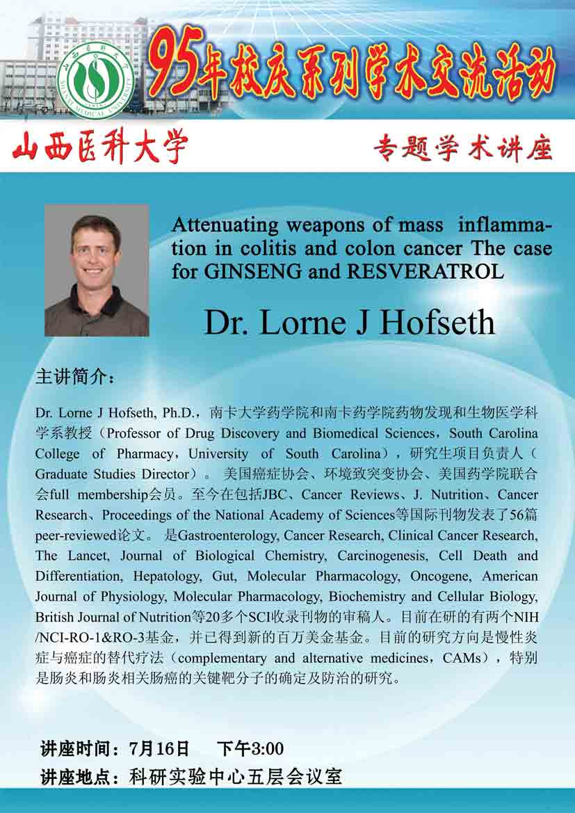 7-16 15:00:Attenuating weapons of mass inflammation in colitis and colon cancer The case for GINSENG and RESVERATROL——Lorne J Hofseth