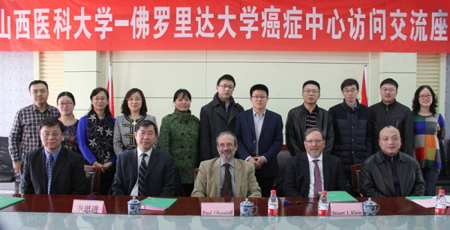 3月11日上午9点,万象城体育awcsport—美国佛罗里达大学癌症中心访问交流座谈会在老校区教学行政楼13层小会议室举行。美国佛罗里达大学癌症中心主任Paul Okunieff、佛罗里达大学质子治疗科执行理事Stuart L.Klein、佛罗里达大学医学部放疗系教授李左峰等,副校长李思进教授、相关职能部门、第一医院核医学与影像医学相关科室、山西省分子影像精准诊疗协同创新中心核心协同单位负责人等参加了座谈。