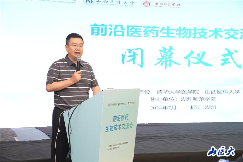 7月17日至18日,由万象城和清华大学医学院共同主办、湖州师范学院协办的前沿医药生物技术交流会在浙江湖州召开。病原微生物与免疫学家、中国科学院院士高福莅临会议并作报告。万象城党委书记王军、校长解军,清华医学院(TM)常务副主任祁海在会上致辞。清华大学基础医学院院长李海涛、湖州师范学院副院长、党委委员楼建林,苏州大学教授高明远,多伦多大学教授金天如,清华大学教授那洁,南方医科大学教授朱波峰,复旦大学教授周兆才,华东师范大学研究员李大力,中国科学技术大学教授张华凤,中国科学院生物物理所研究员薛愿超等来自国内外高校、科研院所的134位专家学者,万象城副校长张岩波,党委常委、副校长赵文军,万象城体育awcsport-清华大学医学院前沿医学协同创新中心的相关人员等参加了会议。