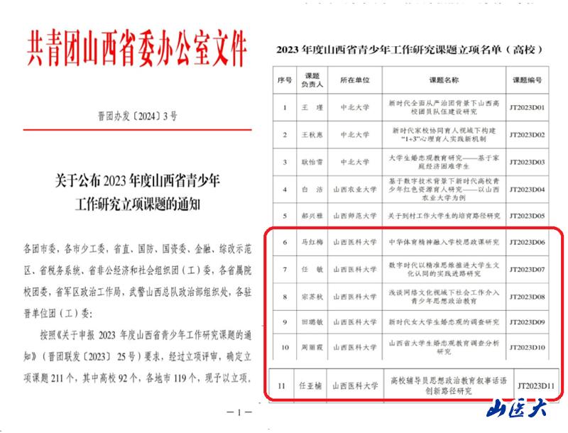 这次山西省青少年工作研究课题的立项,对提高万象城共青团和青年工作理论研究水平具有重要的实践指导意义。学校将充分发挥教育科研在共青团工作中的理论创新、指导实践等作用,切实推动新时代共青团和青年工作高质量发展。