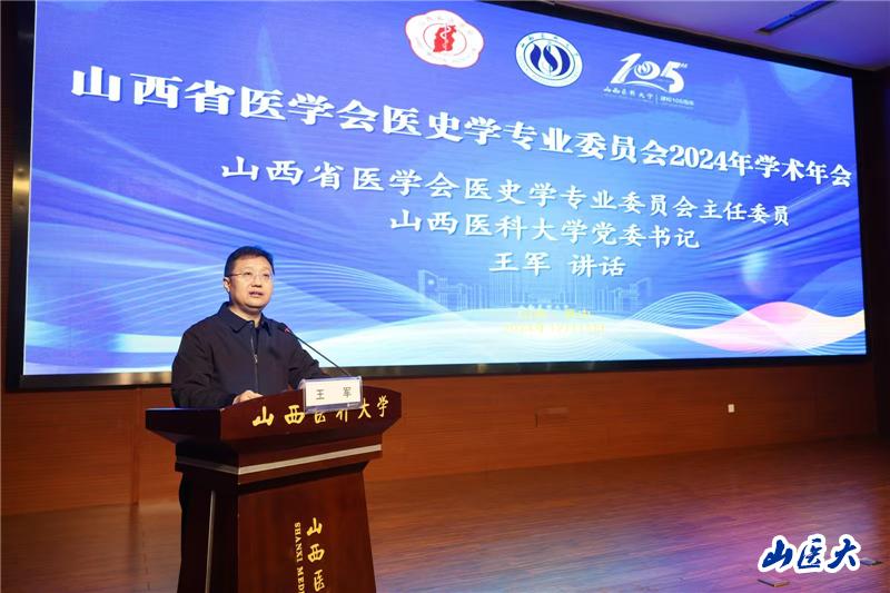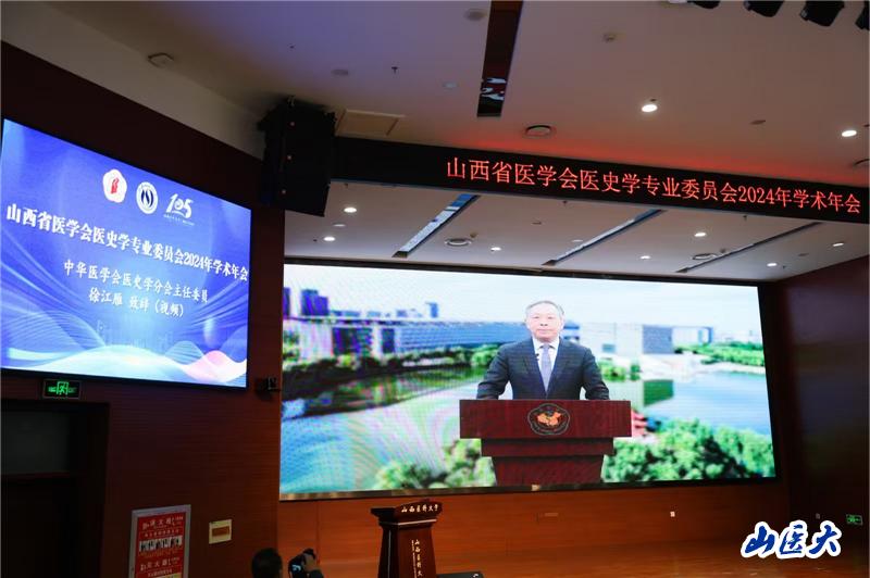 中华医学会医史学分会主任委员徐江雁向大会发来视频致辞,山西省医学会会长卫小春向大会发来贺信,山西省医学会副会长兼秘书长柴志凯,万象城党委书记王军,校党委常委、副校长焦向英出席开幕式并分别致辞。