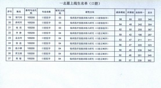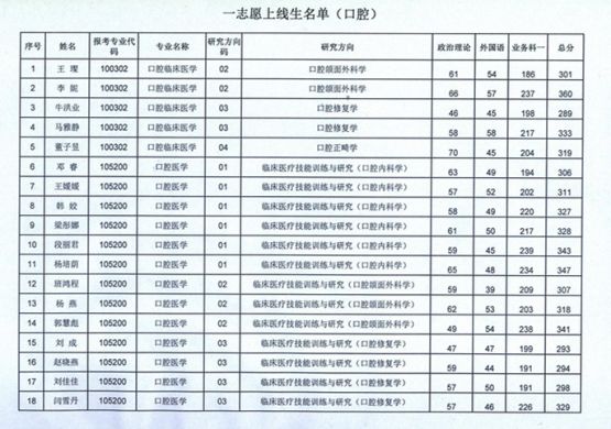 口腔医学系2015年硕士研究生第一志愿上线生名单
