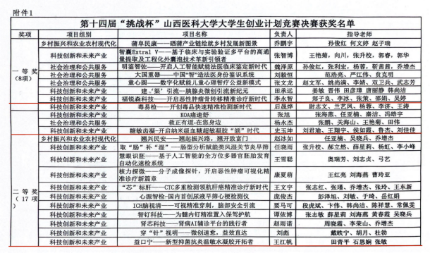 近日,第十四届“挑战杯”山西省大学生创业计划竞赛终审决赛完美落幕。我院荣获省级金奖1项,省级铜奖1项。