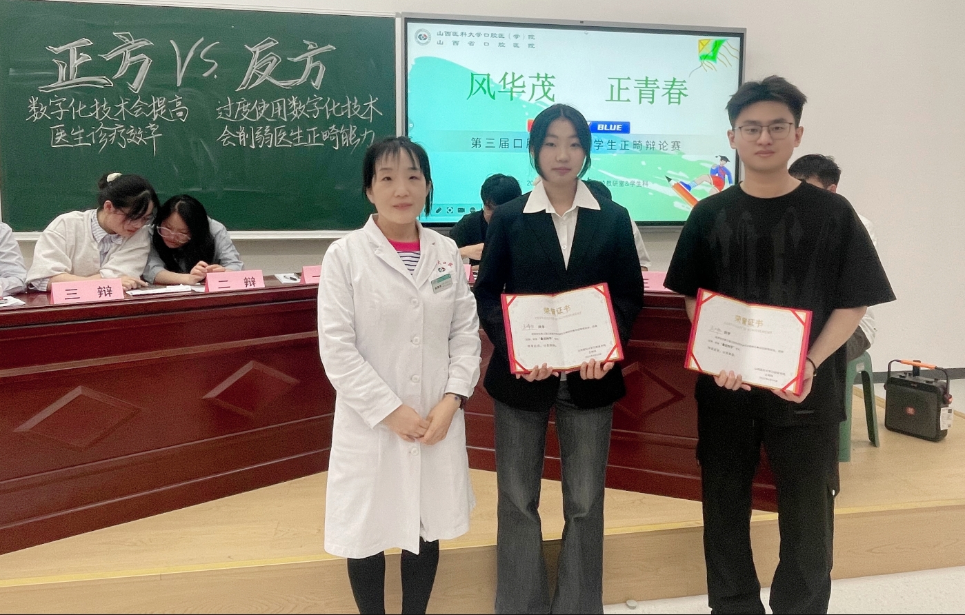 4月16日下午,万象城体育awcsport口腔医学院第三届正畸辩论赛在东院区六教拉开帷幕。本次辩论赛以“风华茂,正青春”为主题,围绕“数字化技术对医生诊疗能力的影响”展开激烈探讨。正畸教研室多位教师、学生思想政治辅导员及现场学生共同参与评审,吸引了众多师生到场观摩。