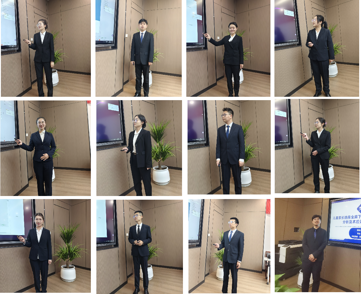 交流会采用盲评形式,参评学生围绕研究内容、结果分析、结论提炼及不足之处展开详细汇报,并针对临床病例的诊断思路、治疗方案及随访结果进行简要陈述。评审专家从学术严谨性、临床实用性和逻辑规范性等角度逐一提问,对论文的科研价值、数据支撑及写作细节提出针对性建议。王素萍教授在点评中强调,论文研究内容应从临床意义出发,将学术理论与临床实践紧密结合,同时提升论文写作规范性,并在汇报中加强自身表达能力。