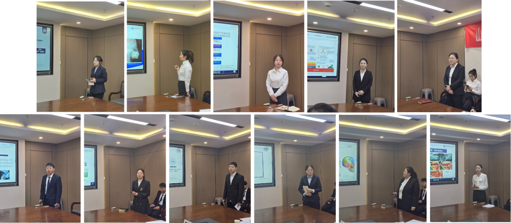 会上,武秀萍教授详细说明了开题报告的评审标准与具体要求。十一位研究生依次就课题的研究背景、目标设定、技术路线及可行性分析等方面进行了系统汇报。评审专家从课题的学术价值、创新性、设计合理性及临床意义等角度进行了深入剖析,并提出多项建设性意见,为同学们进一步完善研究方案、推进课题实施指明了方向。