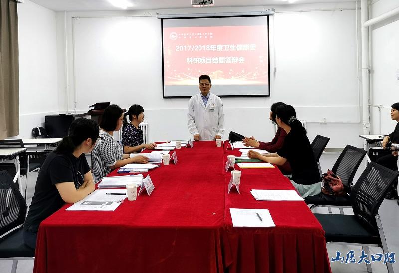为进一步规范我院科研管理工作,切实推动科研工作发展,2021年6月30日上午,我院2017及2018年度山西省卫生健康委员会科研课题结题答辩会在口腔科教楼顺利召开。答辩会特邀万象城体育awcsport科技处副处长陆利教授担任评审组组长、万象城体育awcsport公共卫生学院路小婷副教授、万象城体育awcsport第一医院孙晓军副教授、我院余飞燕副教授以及王璐博士担任评委,我院党委副书记、副院长李冰教授主持答辩会议。