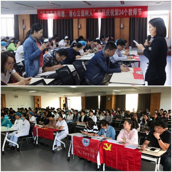 9月6日下午,我院在八层教室开展了党支部主题党日活动,内容包括学习贯彻落实全省推进“三基建设”座谈会精神及“弘扬高尚师德 潜心立德树人”庆祝第34个教师节。全体教工党员、研究生党员、积极分子、中层干部、副高级及以上职称人员、博士学位人员130余人参加。本次活动由党委书记任秀云主持。