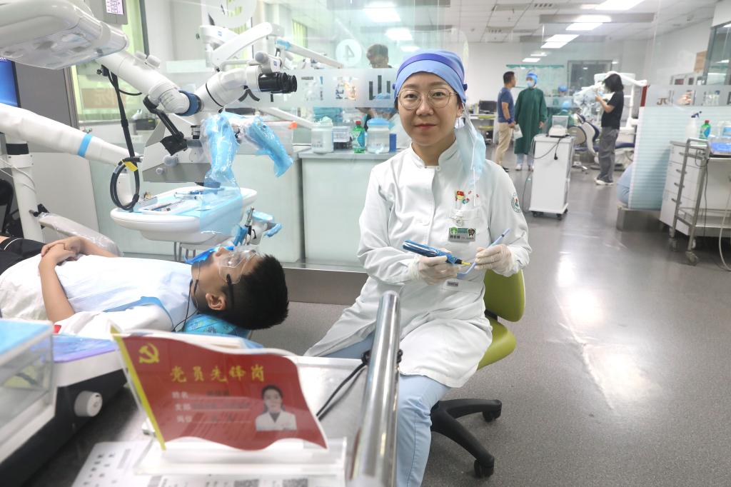 从2010年走上临床工作岗位,至今已有13个年头。作为一名党员,一名医务工作者,她始终坚持“以病人为中心,以质量为核心”的职业道德标准,牢记解人类之病痛的工作使命,凭借优良的党性和医德做好本职工作。临床工作虽枯燥琐碎,但作为医者,唯有充满耐心、细心和责任心才能胜任工作。她为了照顾年老体弱和路途较远的病人,使患者能够早日恢复咀嚼功能,加班加点在所难免,甚至放弃节假日。但是每当得到患者的肯定,看到他们因她制作的义齿又能咀嚼如常、吃嘛嘛香时,她的内心充满了喜悦和自豪。在工作中,她与同事们团结协作,在“传、帮、带”上尽自己最大的努力,耐心指导年轻医师和学生。为了将口腔预防治疗的保健知识传递给更多的人,她多次赴社区、小学、企事业单位参加健康义诊咨询活动,为做好口腔预防保健工作献微薄力量,收获了广大患者的信任与好评。
