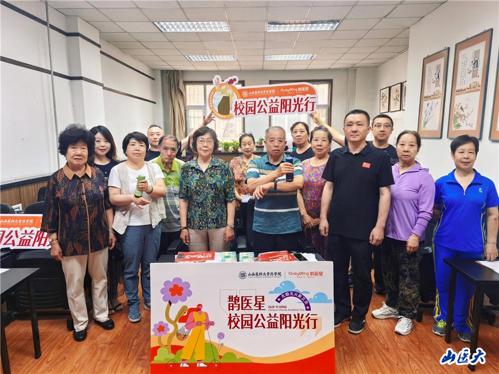 活动伊始,捐赠仪式温情满满。药学院党委副书记童玲、山西大学物电学院校外兼职硕士生导师邓韶辉、“鹊医星”创新创业团队学生组负责人梁泰帅博士代表“鹊医星”团队向校离退休人员管理部捐赠2台自主研发的“鹊医星”电子艾灸仪。离退休人员管理部部长华芮及十余名离退休人员代表共同见证这份凝聚科技力量的健康礼物,承载着对老同志的深切关爱。