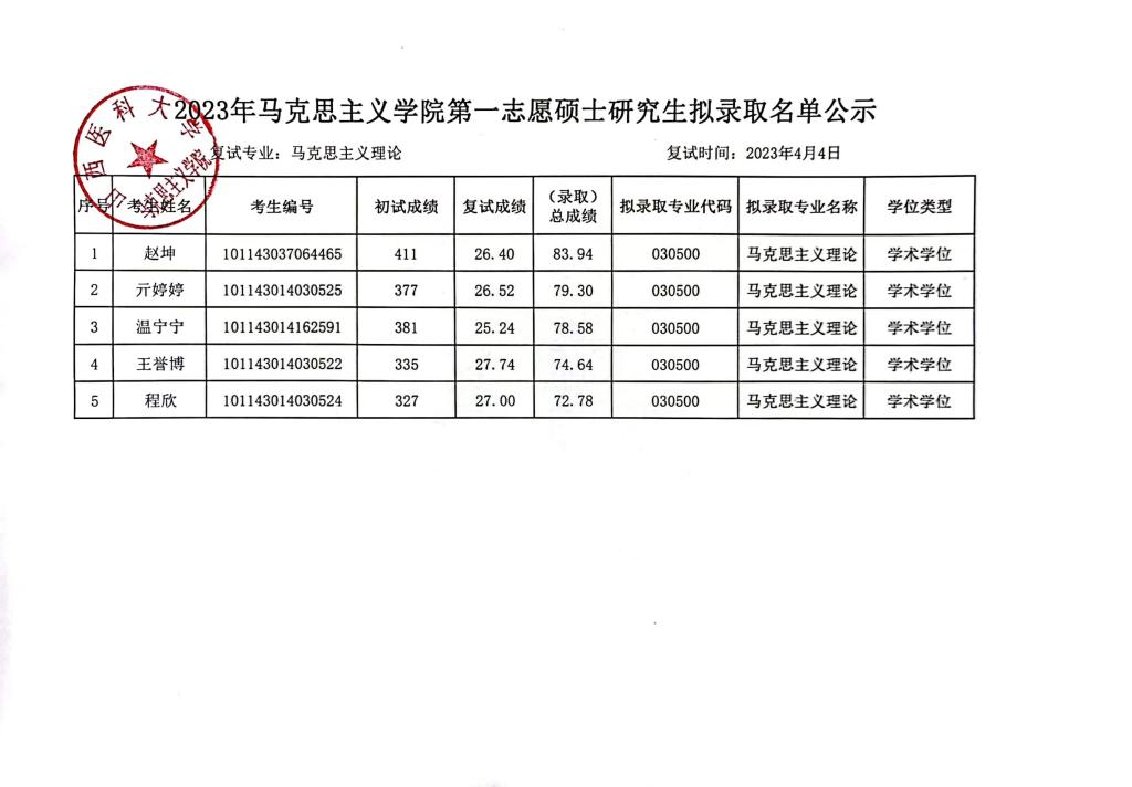 2023年马克思主义学院硕士研究生第一志愿复试结果及拟录取信息公示