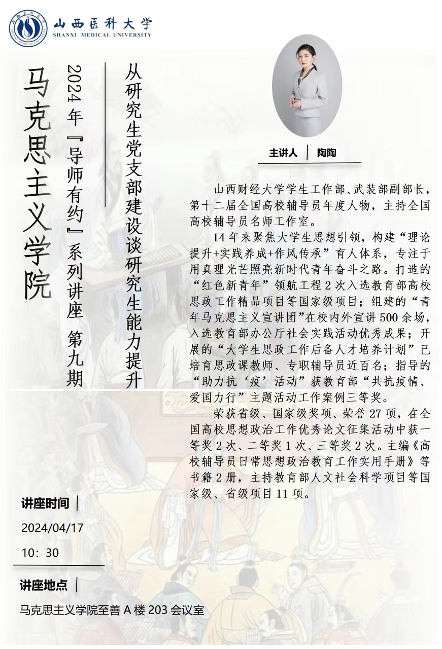 【“导师有约”第九期】 陶陶:从研究生党支部建设谈研究生能力提升