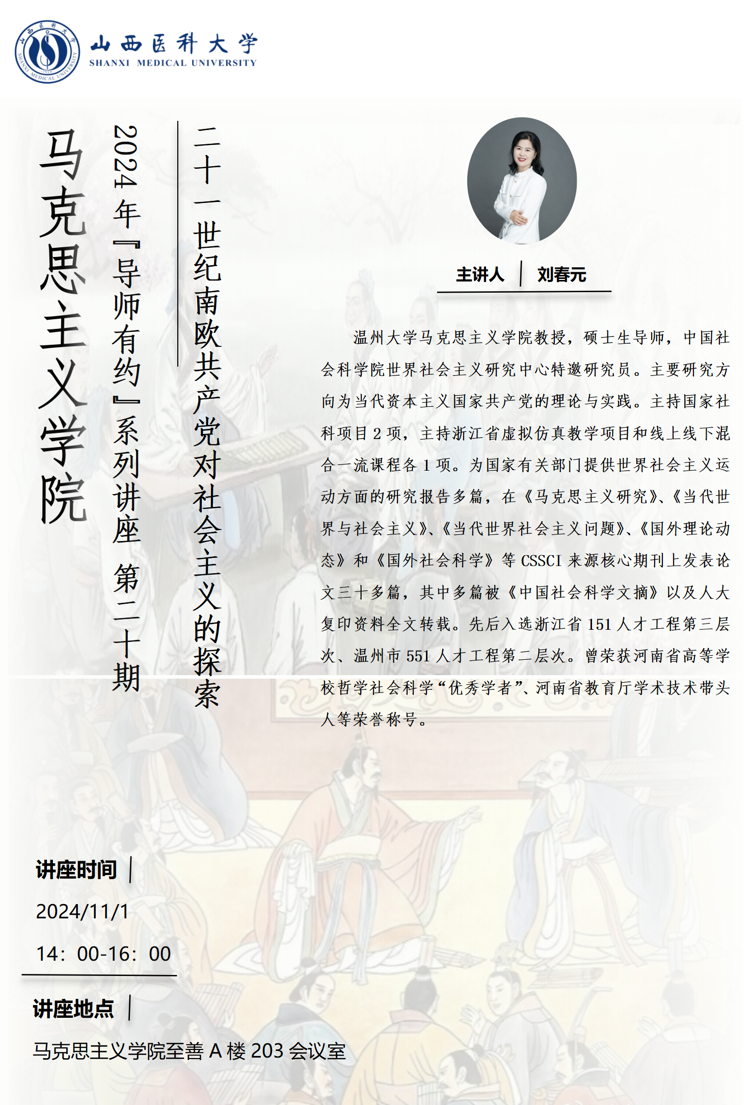 【“导师有约”第二十期】刘春元讲“二十一世纪南欧共产党对社会主义的探索”