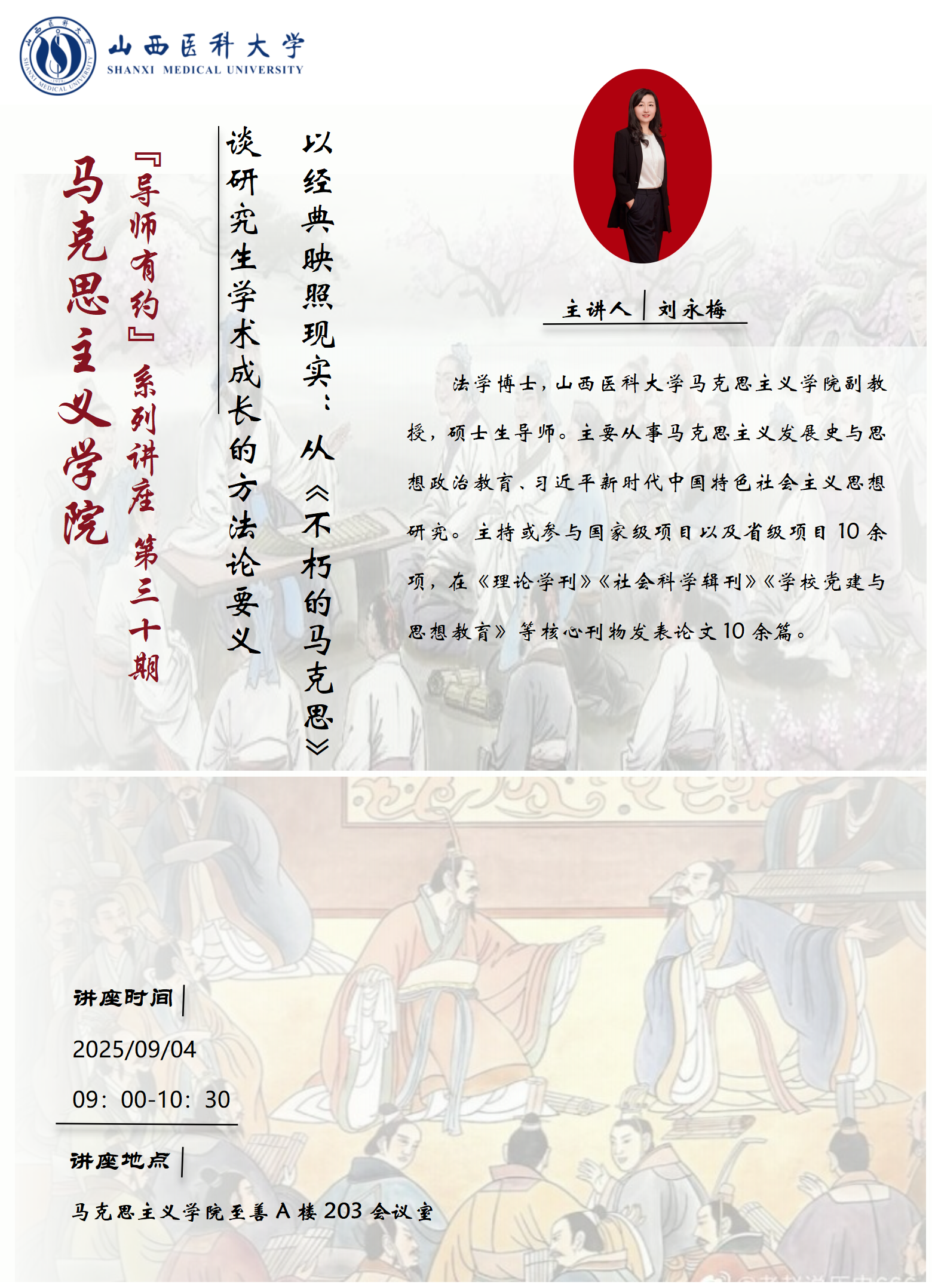 【“导师有约”第30期】刘永梅讲“以经典映照现实:从《不朽的马克思》谈研究生学术成长的方法论要义”