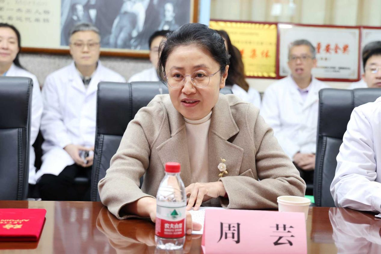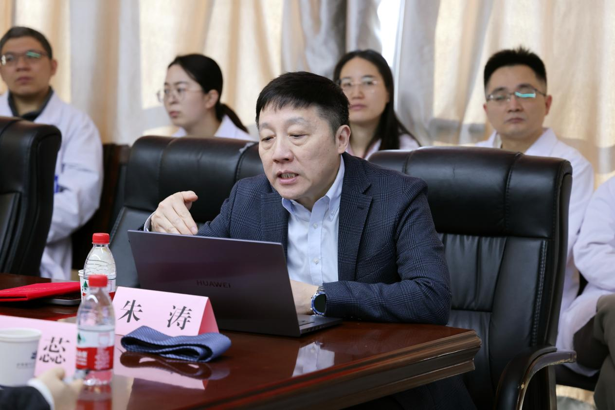 周芸院长在致辞中对朱涛教授及各位专家的到来表示热烈欢迎,对省卫健委对山医大一院发展的关心和支持表示感谢。她指出华西医院麻醉科是国内麻醉学领域的标杆学科,此次合作是我院麻醉科实现跨越式发展的关键一步,更是我院“对标一流,赋能发展”的重要契机。期待通过朱涛教授的悉心指导,麻醉科团队主动学习、大胆实践,将华西经验转化为自身成果,将华西医院的先进理念、技术规范和管理经验引入我院,完善手术麻醉安全质控体系,提升麻醉管理信息化水平,全面提升科研和教学能力,为医院高质量发展注入更强动力。