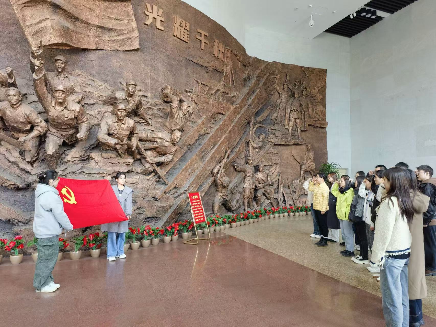 百团大战纪念馆是全国首批“爱国主义教育示范基地”之一。在讲解员的带领下,师生们详细了解了百团大战的历史背景、战略意义以及取得的辉煌成就。党员们被先辈们舍生忘死、浴血奋战、无怨无悔的革命精神深深感动。全体党员在学院专职组织员的带领下重温入党誓词。