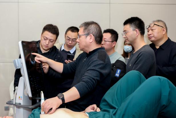 除专题讲座外,梅伟教授还进行了现场演示,展示了超声引导下T12-L1椎旁阻滞、颈深丛及前路坐骨神经的阻滞。在演示过程中,他详细讲解了每一步的操作要点和注意事项,并强调了超声技术在神经阻滞中的重要作用,为今后的临床实践提供了有力的支持。